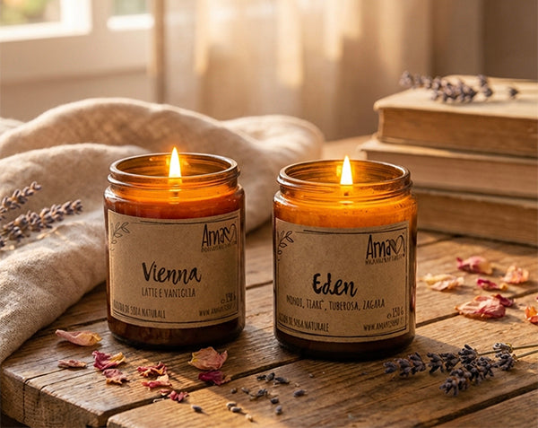 Amami nasce in una cucina immersa nel verde, come un sogno coltivato con passione, costanza e dedizione fino a trasformarsi in una vera professione artigianale. Da un piccolo laboratorio domestico prendono vita le nostre candele artigianali in cera di soia naturale, i profumatori per ambiente e le fragranze per la casa, creati uno ad uno con cura e attenzione ai dettagli.